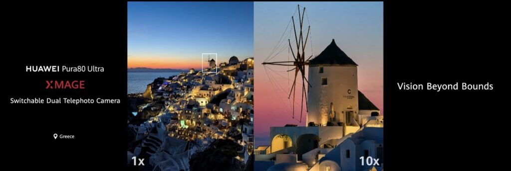 Model Huawei Pura 80 Ultra gre še korak dlje z dvojno periskopsko kamero, največjim tipalom v industriji in preklapljanjem med 3,7- in 10-kratno optično povečavo, kar omogoča dramatične in izjemno ostre portrete ter bližinske posnetke. Napredni algoritmi XMAGE skrbijo, da so fotografije odlične in ostre tudi v zahtevnih svetlobnih razmerah ter pri velikih povečavah.