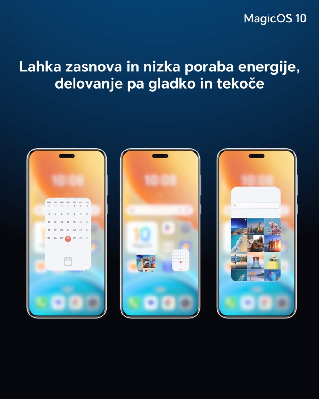 MagicOS 10 prinaša obsežne optimizacije zmogljivosti, zaradi katerih se sistem zdi hitrejši in bolj tekoč, hkrati pa zmanjšuje porabo energije. Posodobitev izboljšuje tudi povezljivost HONOR, kar olajša deljenje vsebin med napravami. Uporabniki se lahko zdaj preprosto povežejo tudi z iPhoni in delijo datoteke ali fotografije brez zapletenih postopkov.