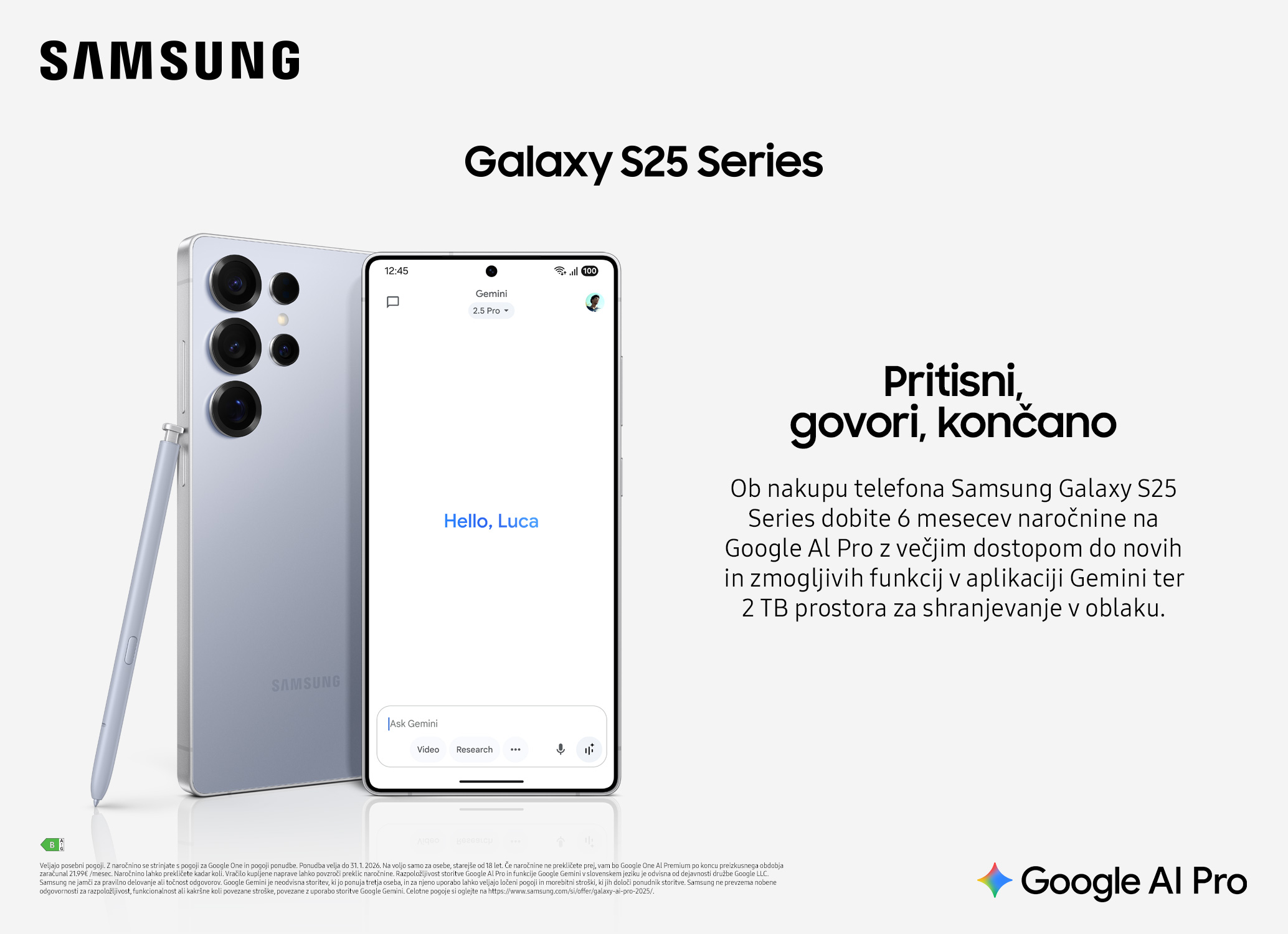 Če z najnovejšimi pametnimi telefoni do sedaj še niste imeli opravka, vas bo vgradnja umetne inteligence vanje naravnost sezula. Sploh v primeru Samsung Galaxy telefonov, ki premorejo kar dve pasmi umetne inteligence. Lastno Galaxy AI, ki skrbi, da se vse, povezano s pametnim telefonom odvija kar se da intuitivno in gladko, ter Google AI Pro, ki v navezi z »vsevednim stricem« iz oblaka ponuja dostop do informacij celega sveta v dlani. Skoraj dobesedno.