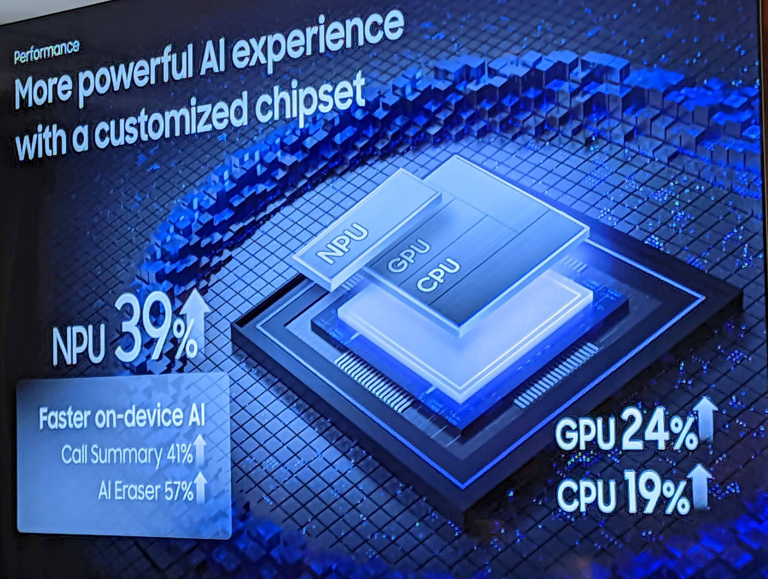 Srce naprave bije hitreje kot kadarkoli prej. Hitri zmaj (beri: procesor Snapdragon) je v peti generaciji že sicer najhitrejši med mobilnimi platformami, z različico »For Galaxy« pa si je Samsung zagotovil ekskluzivo, da ga lahko še malce »navije« in v testih dosega malenkost boljše rezultate kot konkurenti. Preklapljanje med 15+ aplikacijami in interakcijami s pomočnikom umetne inteligence je zanj mala malica, tudi mobilne igre nalaga in poganja z neverjetno lahkoto.